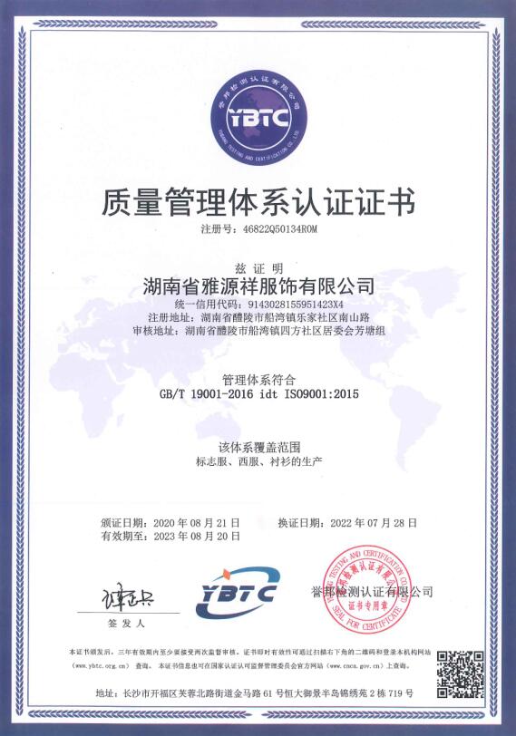 標簽:湖南省雅源祥服飾有限公司、標志服飾廠家、西服廠家、襯衣廠家